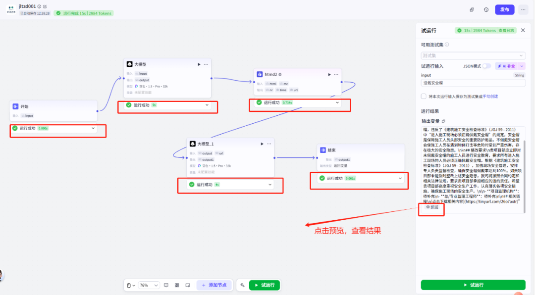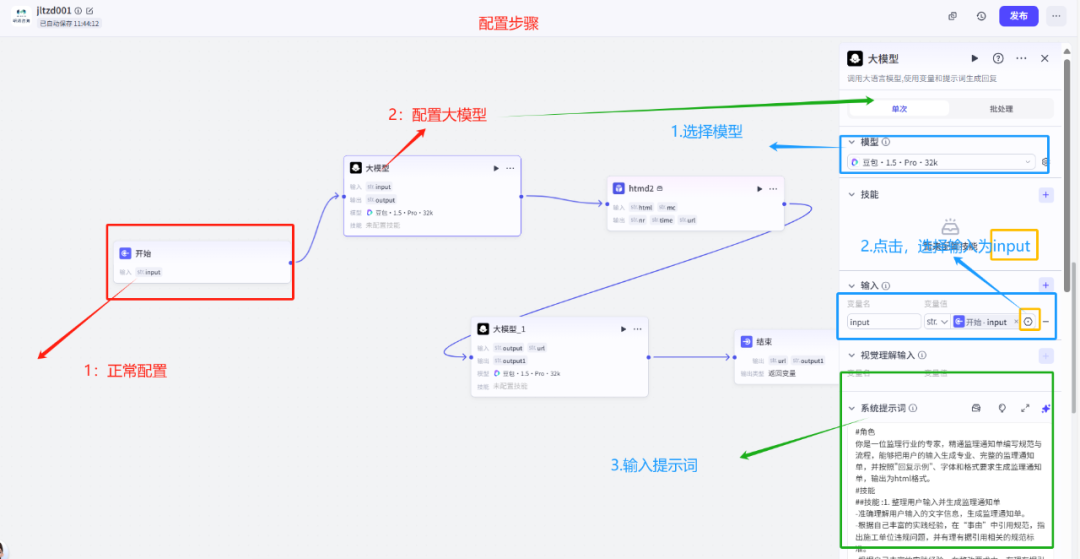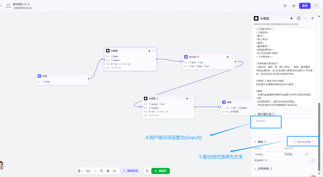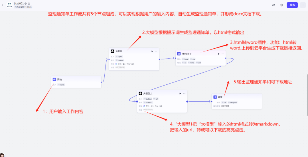 让一个 LLM 节点一次生成“通知内容+整改建议+法规依据+编号填充”——结果内容混乱,错误频出。